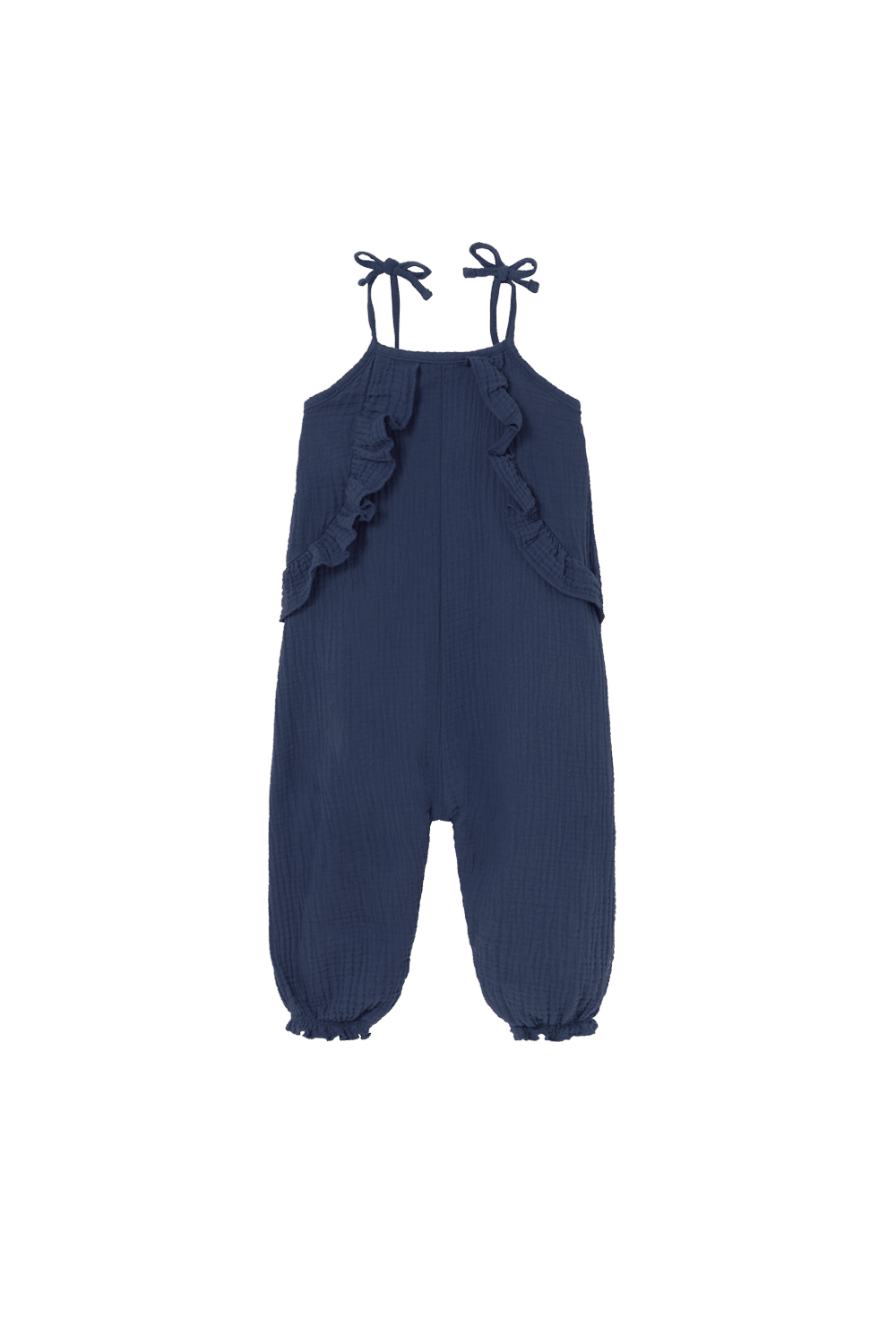 Les fines bretelles et le volant délicat à l’avant apportent une touche élégante et poétique à cette pièce intemporelle. À l’arrière, un dos élastiqué assure un ajustement confortable et une grande liberté de mouvement, tandis que les bas de jambes smockés créent une silhouette souple et parfaitement ajustée.