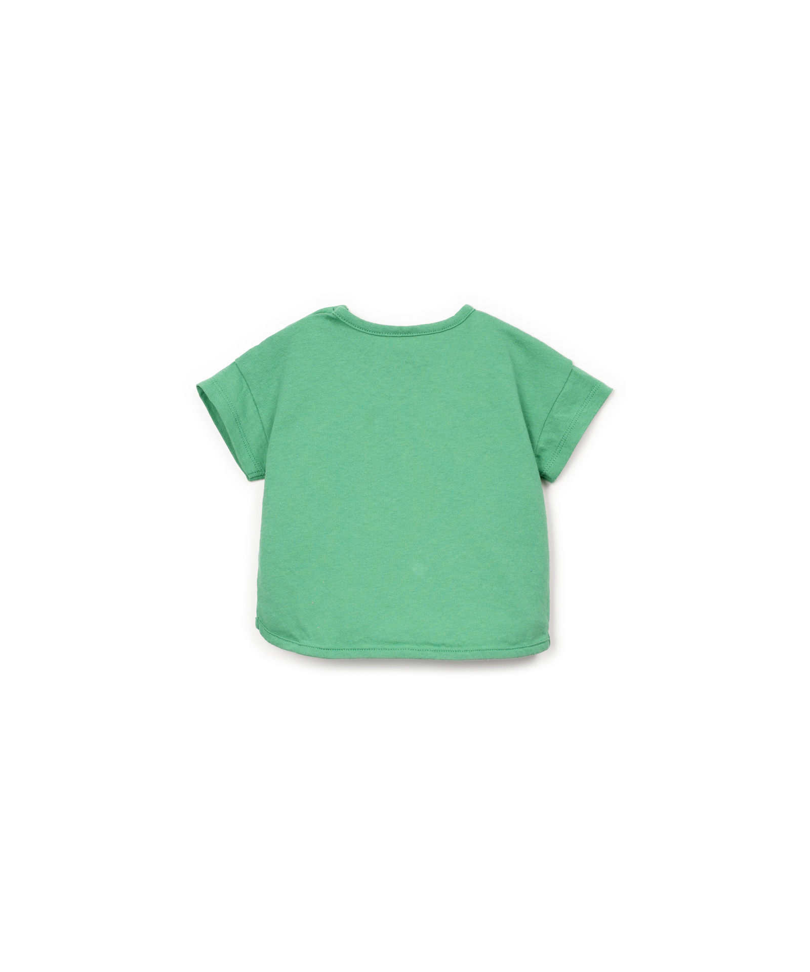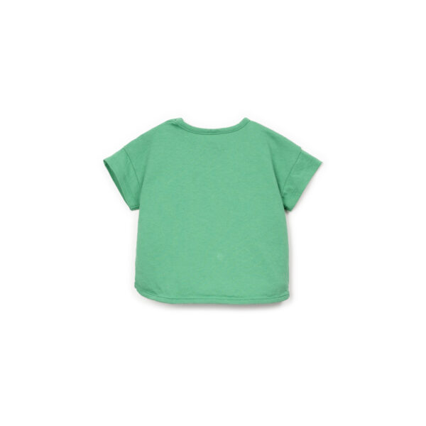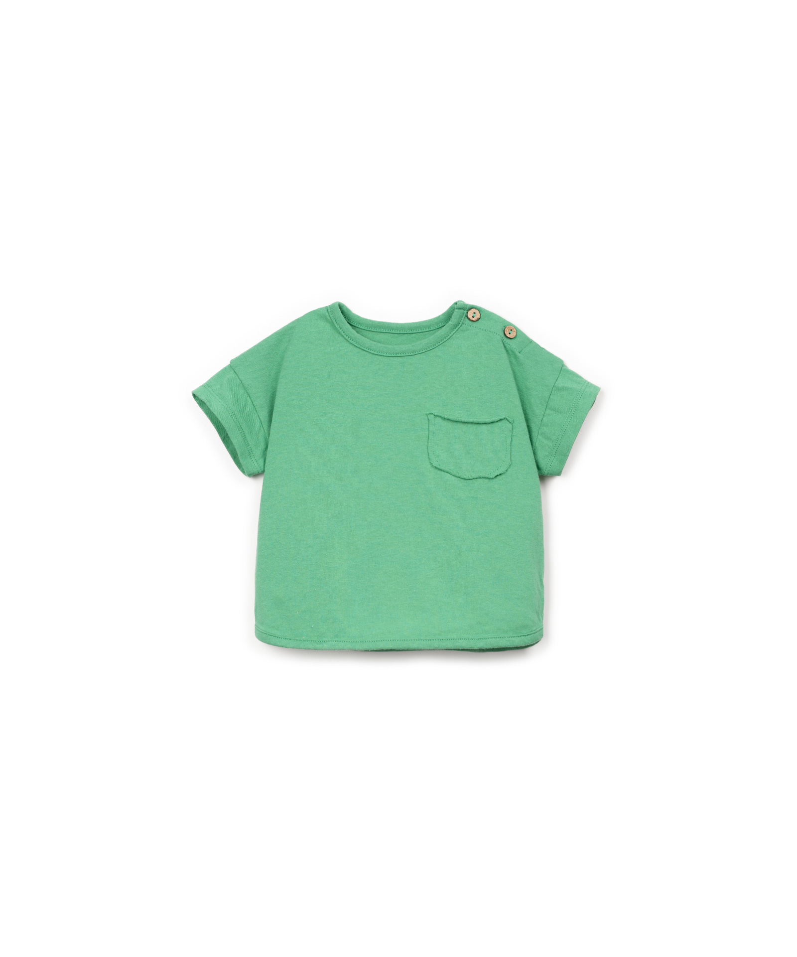 Ce t-shirt est confectionné en maille avec un mélange de coton biologique et de coton recyclé, en couleur vert menthe. Il présente un col rond, des manches courtes, une poche poitrine avec des détails passepoilés et une ouverture sur l’épaule avec des boutons en coco. Existe en vert, bleu et blanc.