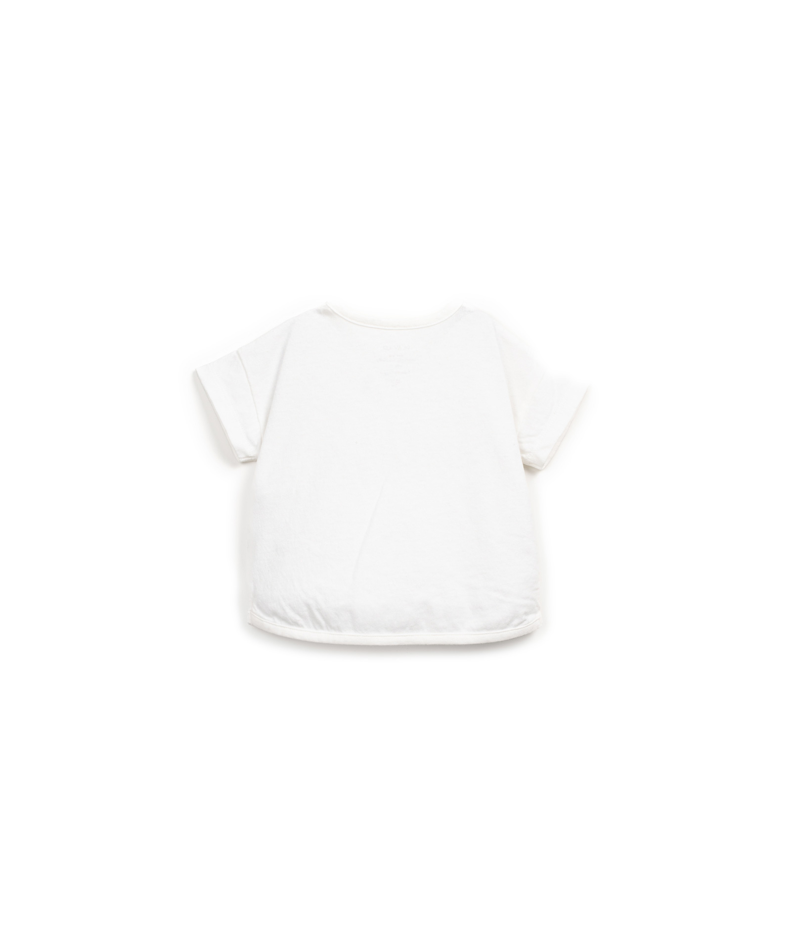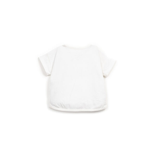 Ce t-shirt est confectionné en maille avec un mélange de coton biologique et de coton recyclé, en couleur blanche. Il présente un col rond, des manches courtes, une poche poitrine avec des détails passepoilés et une ouverture sur l’épaule avec des boutons en coco. Existe en vert, bleu et blanc.